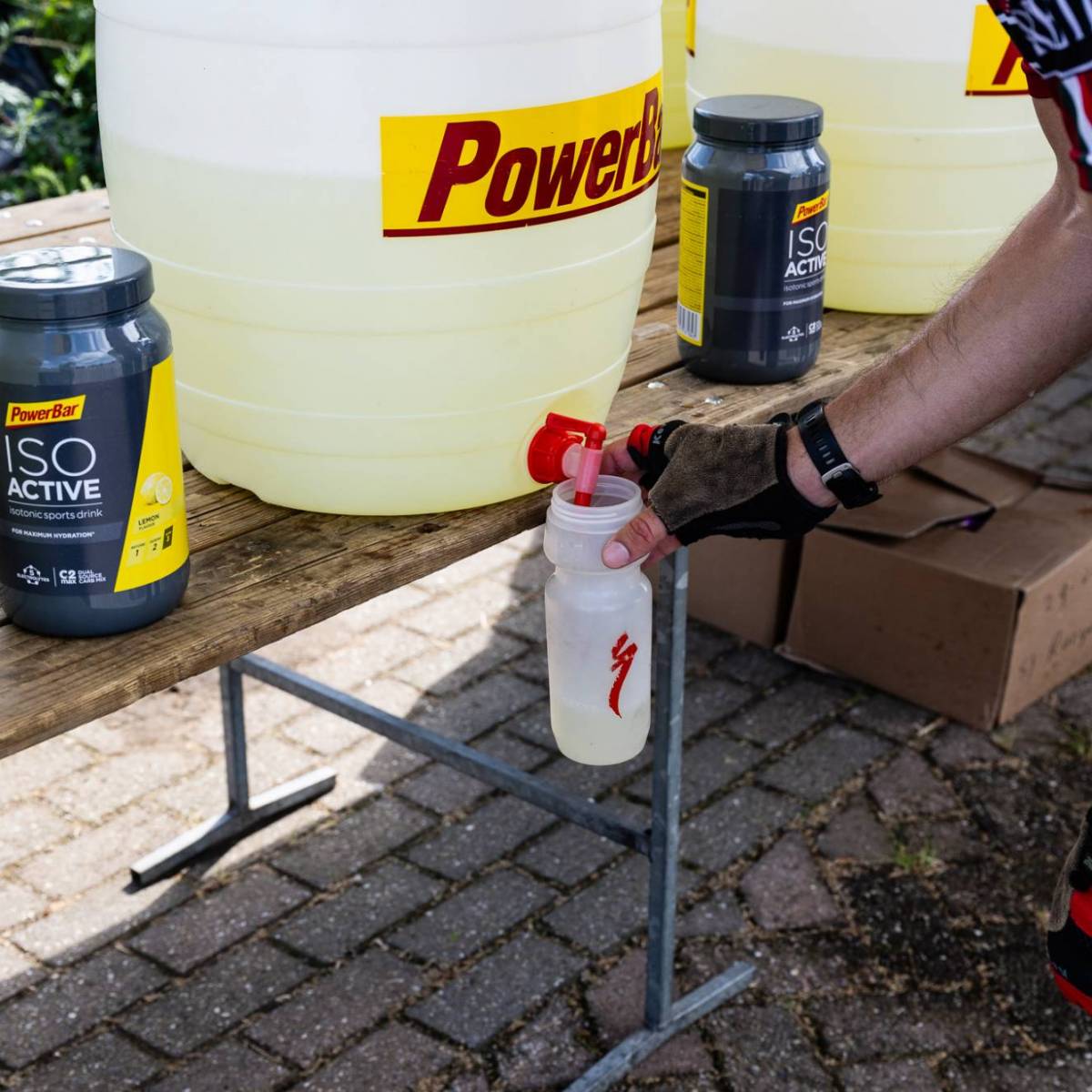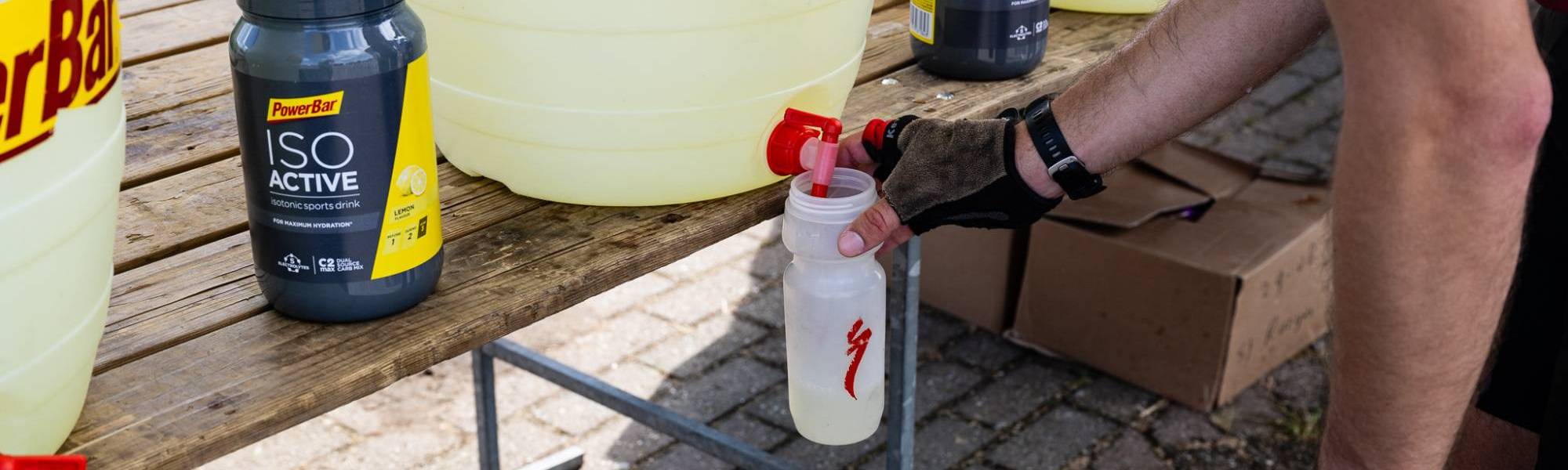 Het is sterk aan te bevelen om te trainen met de sportvoeding, die jij ook gaat gebruiken tijdens de Giro d'Utrecht. Het advies is om gemiddeld iets meer dan 60 gram koolhydraten per uur in te nemen. Het is belangrijk om vanaf de start goed te blijven aanvullen. Als je pas vanaf het 2e of 3e uur begint, ben je al te laat! Probeer een vast patroon aan te houden; plan bij voorkeur een inname- moment iedere 20 á 30 minuten. Merk je tijdens de training/wedstrijd dat je meer behoefte hebt aan energie, dan kun je dit aanvullen tot 90 gram koolhydraten per uur. Dit kun je het makkelijkst doen door bijvoorbeeld een halve bidon meer Powerbar Isoactive te drinken. Wees er zeker van dat je niet meer dan 90 gram koolhydraten per uur in neemt!